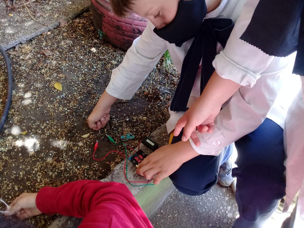 Con la meta de implementar la huerta en 2021, este año fue clave en el acercamiento a las tecnologías y el conocimiento más profundo sobre los cultivos y sus cuidados. Trabajan 1ero, 2do y 5to año de forma conjunta. "Sembramos semillas. Comprobamos condiciones de luz y agua, con sensores naturales - visión, tacto -. Incorporamos recursos tecnológicos: sensores globilab."