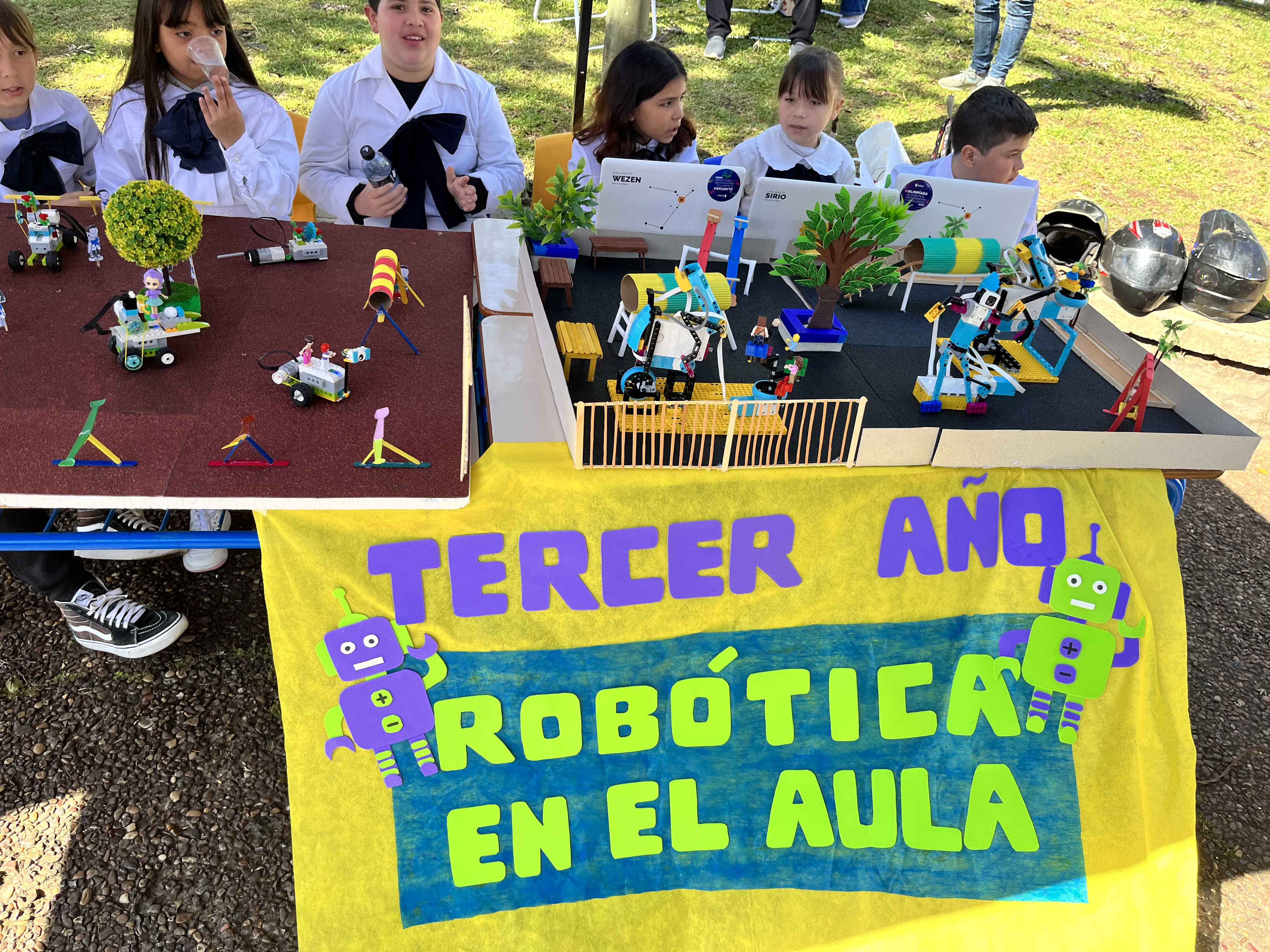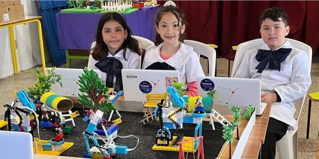 Luego, incorporaron los kits de robótica para construir prototipos de los juegos utilizando piezas estructurales y motores para simular su movimiento. Por último, unificaron todos los prototipos en maquetas del patio de la escuela.