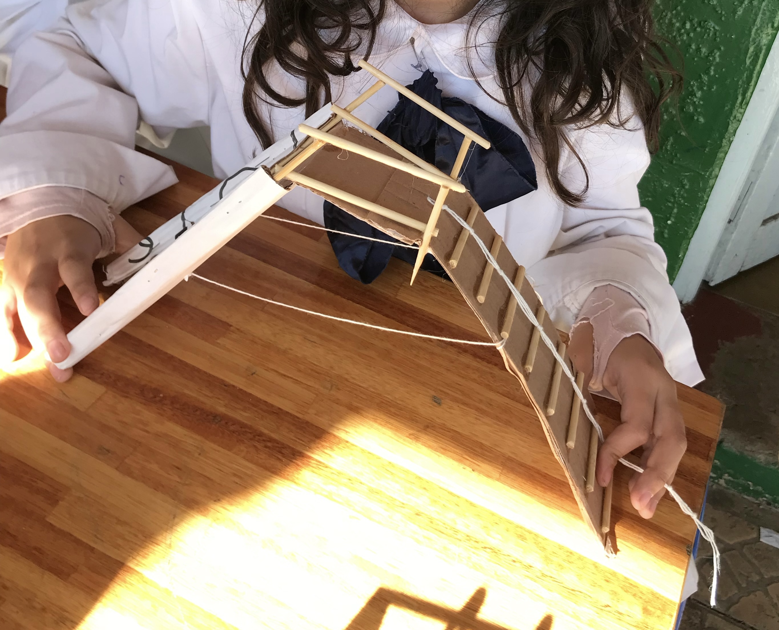 La comunidad de estudiantes de la escuela N°8 de Artigas detectó como problema la falta de juegos en el patio de su escuela. Para solucionar este problema, primero comenzaron haciendo bocetos de juegos que les gustaría tener en su patio. En una segunda etapa, maquetan los juegos diseñados con materiales como madera, papel y cartón.