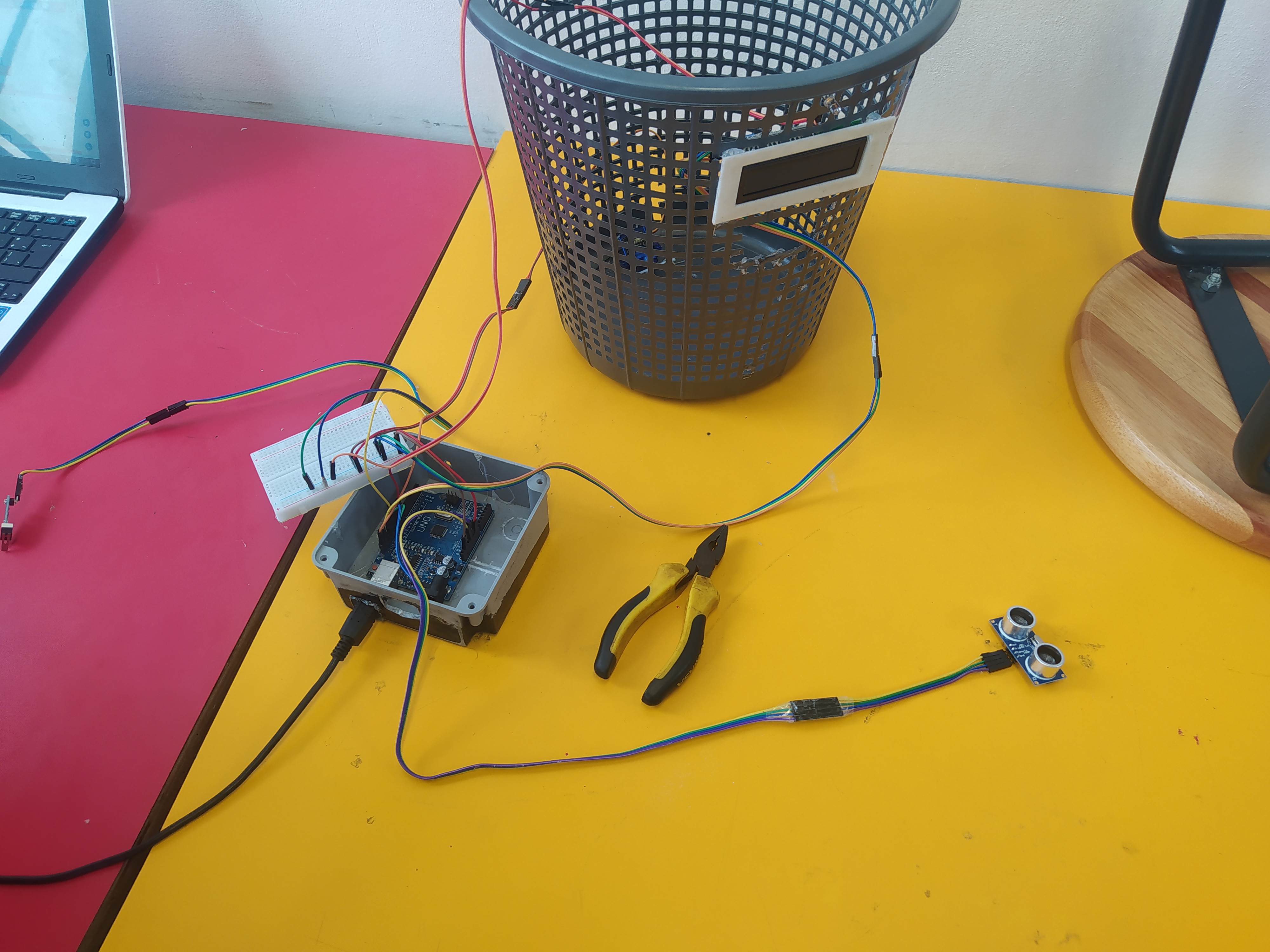 El proyecto desarrollado fue una papelera automática que cuenta con un sistema de apertura automática y clasificación de residuos. También tiene un sistema de alarma de desbordamiento que avisa a los auxiliares de limpieza cuando está llena para poder vaciarla. La tecnología que se utilizó fue la placa micro:bit, así como placas Arduino uno.