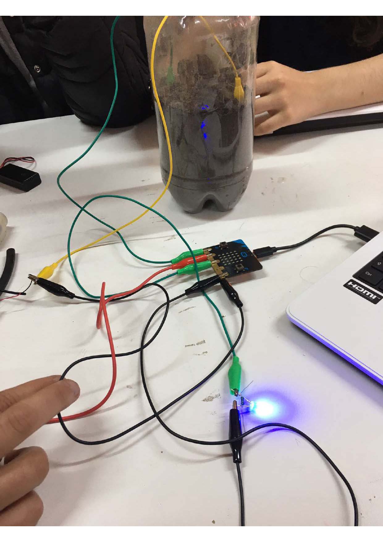 Bajo la temática “Liceo sostenible”, la comunidad de estudiantes se propuso abordar el problema del uso del agua y estudió la forma de reutilizar el agua de lluvia para usar en el invernadero liceal. Para eso hicieron una maqueta del invernáculo y, mediante placas micro:bit y kits de ampliación que detectan la humedad del suelo y la temperatura, diseñaron un sistema de riego automático que utiliza el agua recogida de la lluvia.