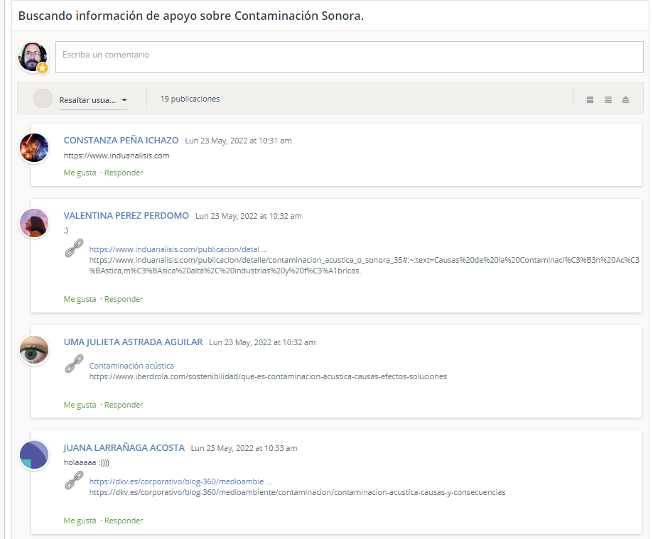 ara ello, estudiantes realizaron mediciones con los sensores fisicoquímicos Globisens y se pudo constatar un problema de contaminación acústica, ya que los valores obtenidos están entre 70 y 90 decibeles, en particular en los recreos. Se propusieron diversas ideas por grupos, algunas de ellas integrando la placa micro:bit, los drones y el kit de robótica.