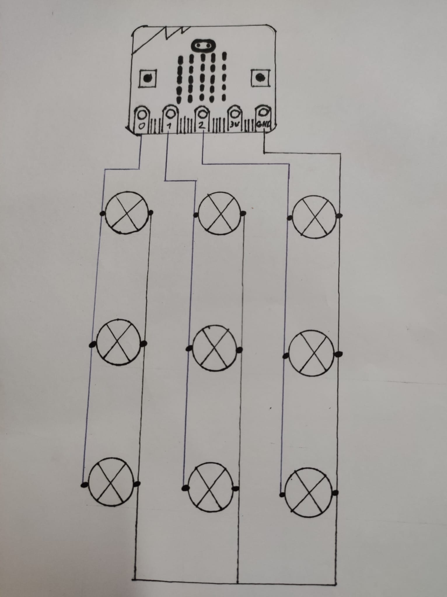 El colectivo de estudiantes se propuso trabajar para mejorar la iluminación del centro, haciendo un uso correcto de electricidad en las luminarias de los salones de clase. Para ello construyeron una maqueta representativa de su salón, con un circuito eléctrico correctamente implementado, en la cual lograron controlar luces led en función de la posición de la placa micro:bit. De esta manera lograron encender independientemente las luces de su salón dependiendo de la luz natural.