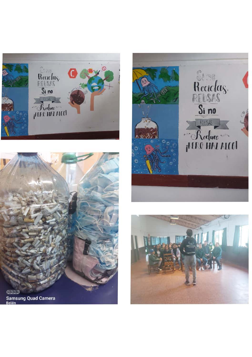 El colectivo de estudiantes trabajó con base en la contaminación de colillas de cigarrillos en el medioambiente en conjunto con la organización No Más Colillas. El proyecto se enfocó en la recolección y la reutilización de estos elementos, elaborando como solución pintura, con la cual se realizó un mural en el centro educativo, y colilleros que fueron fabricados reutilizando bidones de 5 litros, con el fin de ser colocados en la localidad.